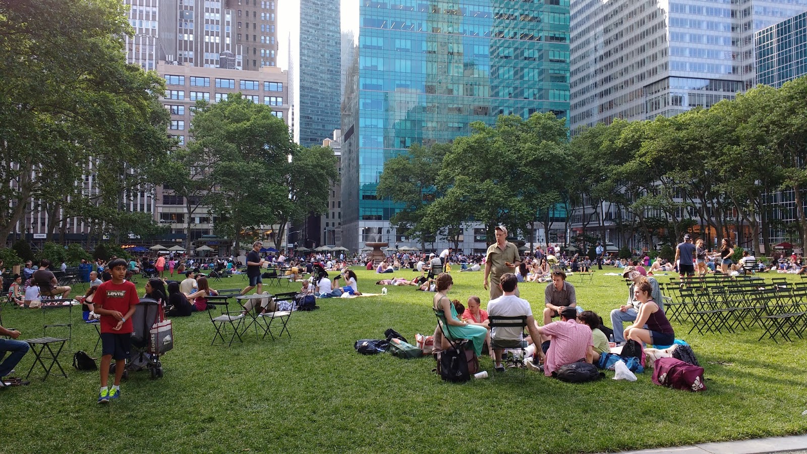 วันนี้อากาศดีแดดเปรี้ยงชาวนิวยอร์กมาแวะนอนอาบแดด จับกลุ่มคุยกัน บ้างก็มานั่งปิกนิกเป็นครอบครัวดูแล้วก็สบายๆดีนะ เราแวะนั่งพักดื่มน้ำคลายร้อนสักนิดที่นี่